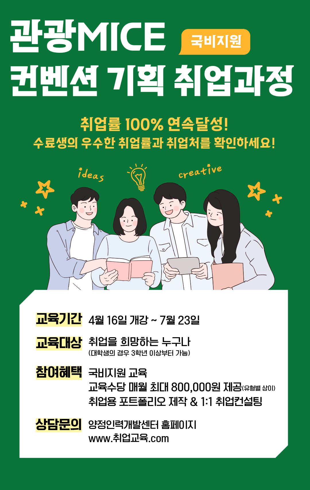 - 매월 교육수당 최대 800,000원 제공(유형별 상이)