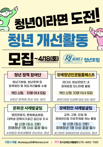 ㅇ 모집대상 : 장애인권에 관심 있는 만 19~34세 장애⋅비장애 청년