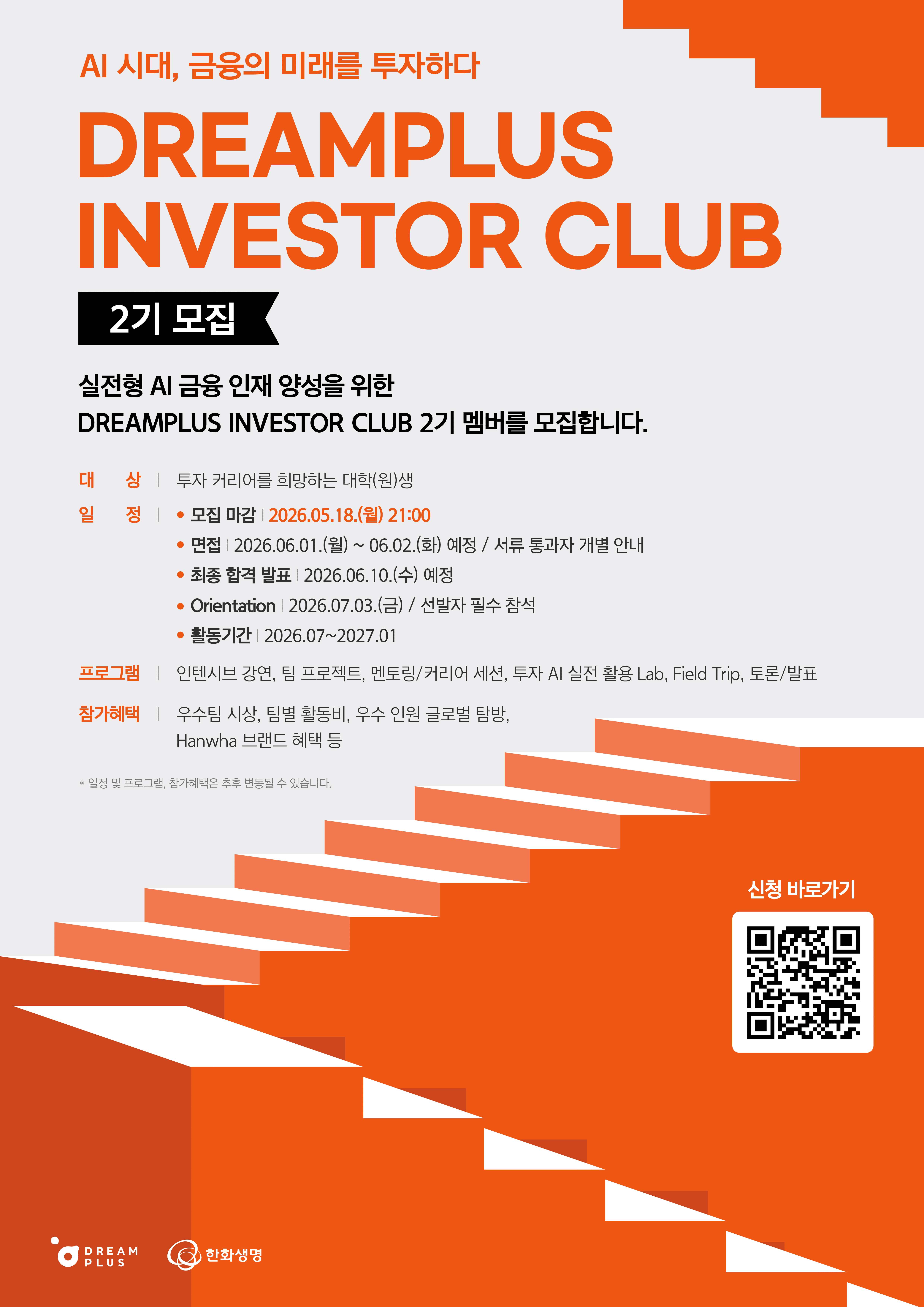 AI 시대, 실전형 금융권 인재 양성을 위한DREAMPLUS INVESTOR CLUB 2기 멤버를 모집합니다.