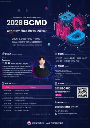 블록체인 이론과 실습 교육에 관심있는 분들의 많은 참여 바랍니다.