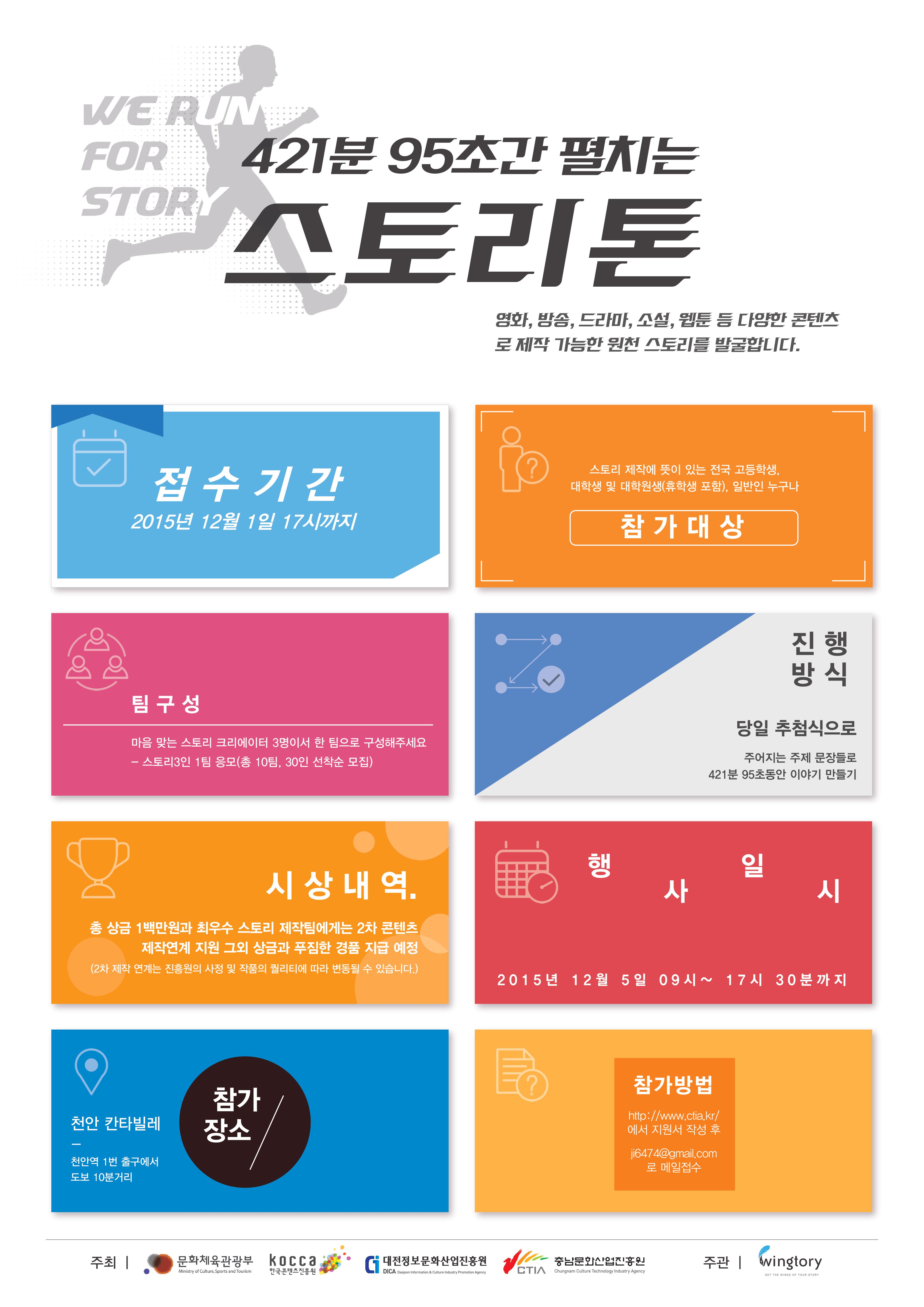 - 참가대상 : 스토리 제작에 뜻이 있는 전국 고등학생, 대학생 및 대학원생(휴학생 포함), 일반인 누구나