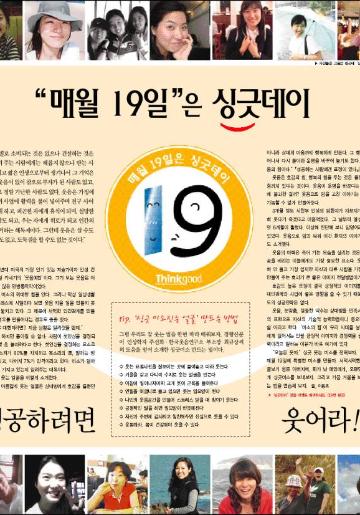 싱긋데이 캠페인 작품공모전 Thinkgood [19일은 싱긋데이] 캠페인 작품 공모전 ■주최 : 대학문화신문사(대학문화 Thinkgood) ■취지 대학문화 매거진 씽굿(www.ucpress.co.kr)이 매월 19일을 ‘싱긋데이’로 정하고 공모이벤트를 펼칩니다. [아름다운 사회를 위하여 '싱긋'미소를 보내세요]라는 주제로 매월 19일을 '싱긋'데이로 정하고 특히 이날만큼은 주변의 친구과 가족 친지들에게, 교수님과 직장동료, 그리고 거리에서 만나는 많은 이들에게 싱그러운 웃음의 미소로, 또는 전화와 이메일 등 메시지를 보내는 밝고 건강한 웃음습관으로 아름다운 사회를 만들고자 하는 캠페인입니다. 그 동안 대학생들에게 싱긋데이를 공모한 결과 [싱긋]과 읽혀지는 발음이 비슷하고, 숫자 [1]은 거울, 숫자 [9]는 거울 보며 싱긋 웃는 사람얼굴을 형상화 할 수 있는 [19일]을 [싱긋데이]로써 '싱긋'미소 보내는 날로 정하였습니다. 이에 싱긋데이 캠페인을 위한 다양한 작품과 아이디어를 공모합니다. ■대상 : 전국 2년제 이상 대학생 및 싱긋미소에 관심있는 모든 분 ■공모내용 : 19일은-'싱긋데이'와 관련 분야별 작품 및 아이디어 공모 ^디자인 부문 -'싱긋데이'마크 또는 캐릭터 디자인[규격: 400*400픽셀 jpg 내외) '싱긋'미소를 표현한 그래픽, 패러디등 디자인 작품(600*600픽셀 jpg 1컷~5컷이내) ^수필/수기 부문 - 미소(웃음)와 관련된 생활수필 '웃음과 미소로 어려움을 이겨낸 감동적인 이야기(200자 원고지 10매 내외) ^사진 부문 -활짝 미소짓는 본인 또는 주변의 얼굴 사진과 사진설명(디지털카메라 혹은 핸드폰 카메라 촬영) ^아이디어 부문 - '싱긋'데이: 미소 보내기 캠페인 범 국민, 사회적 확대방안에 대한 아이디어(A4용지 1-2매 분량의 자유형식) ■1차 응모기간 : 2005년 12월 15일 *2차응모 추후 발표, 연중 지속적으로 진행 ■상품시상 및 특전 1. 선정된 작품은 'Thinkgoog'잡지 지면과 인터넷 홈페이지(www.ucpress.co.kr 및 공모전.kr)에 발표 소개되어 홍보 캠페인에 활용되며 좋은 작품을 보내주신 분들에게 다양한 경품을 드립니다. *자세한 경품안내는 추후 공고 2. 공모전에 참여하신 모든 분께는 'Thinkgood 패밀리 리더'로서의 자격이 주어지며 12월 발행되는 [2006공모전 가이드북 200선]을 보내드립니다. ■작품접수 : 이메일 thinkgood@ucpress.co.kr [제목에 싱긋데이 작품공모 당당자 앞]이라고 쓸 것. ■기타 문의 : 기타 자세한 내용은 이메일(thinkgood@ucpress.co.kr), 전화(02-3486-7540) 싱긋데이 캠페인 공모전 담당자에게 문의 바랍니다.