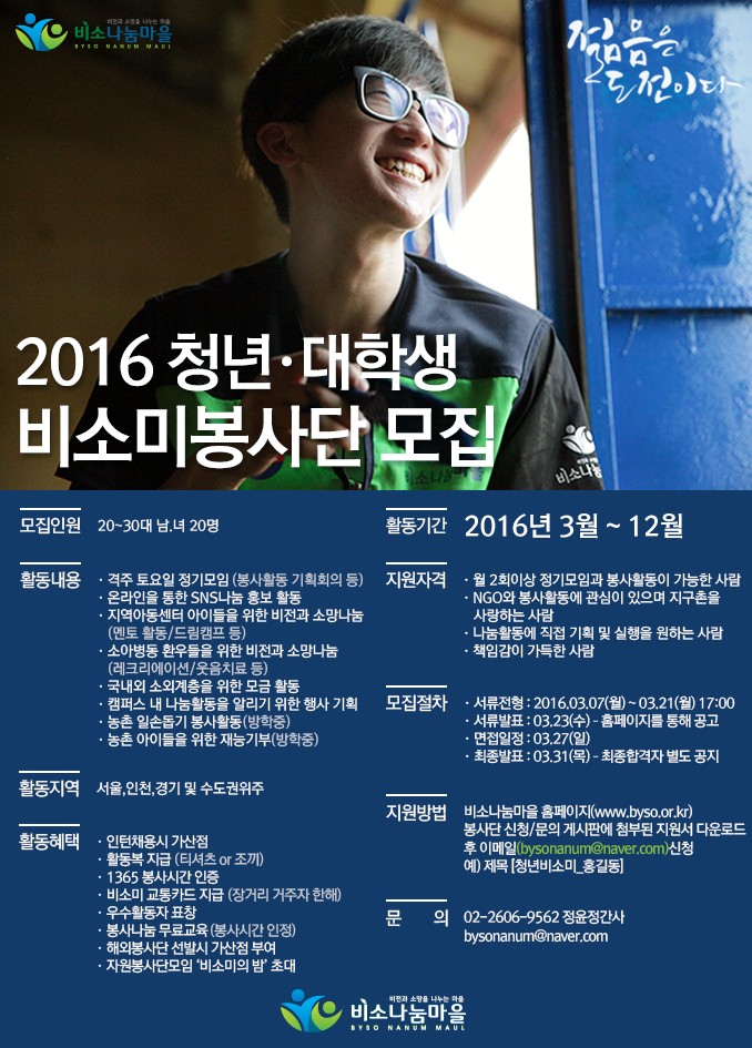 2016년도 국내 청년·대학생 비소미봉사단을 모집