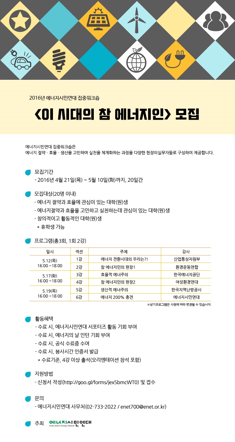 - 수료 시, 에너지시민연대 서포터즈 활동 기회 부여