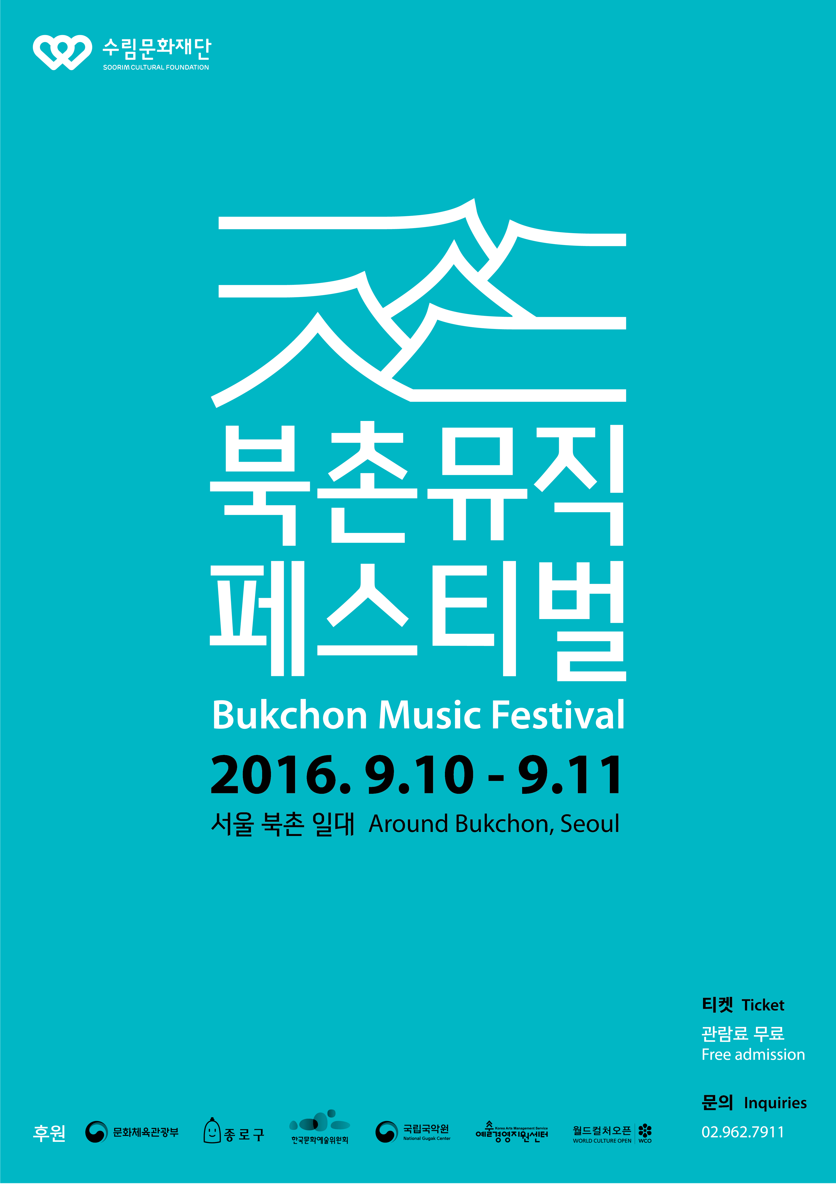 * 자세한 사항은 '북촌뮤직페스티벌2016 북촌지기 모집 안내문' (첨부자료)를 확인하시기 바랍니다.