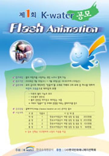 제1회 K-water Flash Animation 공모전 □ 참가대상 : 물과 어린이를 사랑하는 국민 누구나 참여 가능 □ 접수기간 : 2006년 7월 19일(수) 09:00 ~ 2006년 7월 28일(금) 18:00(10일간) □ 공모내용 및 주제 공모내용: 우리 공사의 캐릭터인 ‘방울이’를 소재로 한 플래시 애니메이션 공모주제: 아래의 3개 주제 중 하나를 택하여 어린이홈페이지용 또는 어린이 교육용으로 재미있게 표현 - 다목적 댐의 기능과 효과 수돗물의 안전성 - 물과 관련된 재치있고 재미있는 내용 ※우리 공사 캐릭터 “방울이” 및 주제와 관련된 자료는 홈페이지를 참고 □응모방법 : 우리 공사 홈페이지(http://www.kwater.or.kr)에서 온라인 신청 및 접수 □ 작품형식 작품시간 : 1~3분이내 작품크기 : 570*430픽셀(swf 파일크기 5MB이내) 해 상 도 : 72DPI이상 □ 심사 및 발표 전문가 위촉 심사 후 수상자에게 개별 통지(8월중) 및 우리 공사 홈페이지에 게시(8월 25일 예정) 시상일자 및 장소는 추후 통지함 □ 시상내역 대 상 1점 한국수자원공사 사장 상장 및 상금 300만원 금 상 2점 〃 및 상금 각 200만원 은 상 3점 〃 및 상금 각 100만원 동 상 4점 〃 및 상금 각 50만원 합 계 10점 상금 계 : 1,200만원 ※ 참가자수 및 작품수준 등의 사유로 수상인원은 변동될 수 있으며, 접수 선착순 100명에게 소정의 기념품 지급 □ 유의사항 제출된 모든 작품은 반환하지 않으며, 수상작에 대한 저작권은 우리 공사에 귀속되고, 입상 작품은 우리 공사 홈페이지 및 각종 행사시 홍보자료로 활용됩니다. 수상작은 국내외에 발표된 적이 없는 순수 창작물이어야 하며, 다음의 결격 사유가 있을 경우 수상이 취소됩니다. - 표절이나 모방으로 판명될 경우 - 작품 및 작품에 사용된 소스(이미지, 사운드 등)가 타인의 저작권을 침해한 경우 - 기타 저작권과 관련하여 침해 여부가 밝혀진 경우, 수입상자에 한하여 작업용 fla 파일과 아래 기술된 소정의 서류를 입상자 발표후 7일 이내 제출하여야 함 - 주민등록등본 1부 - 입상자 명의 통장 사본 1부 공모전 요강내역은 한국수자원공사 홈페이지(http://www.kwater.or.kr )를 통해서도 볼 수 있습니다. □ 문 의 처 : (042) 629-2235(구자영 과장), 2239(김윤하 대리) □ 주 최 : 한국수자원공사 □ 후 원 : (사)한국만화에니메이션학회