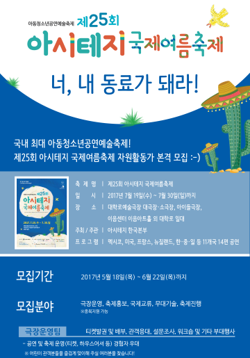 너 내 동료가 돼라! ‘제 25회 아시테지 국제여름축제’ 자원활동가 본격 모집!