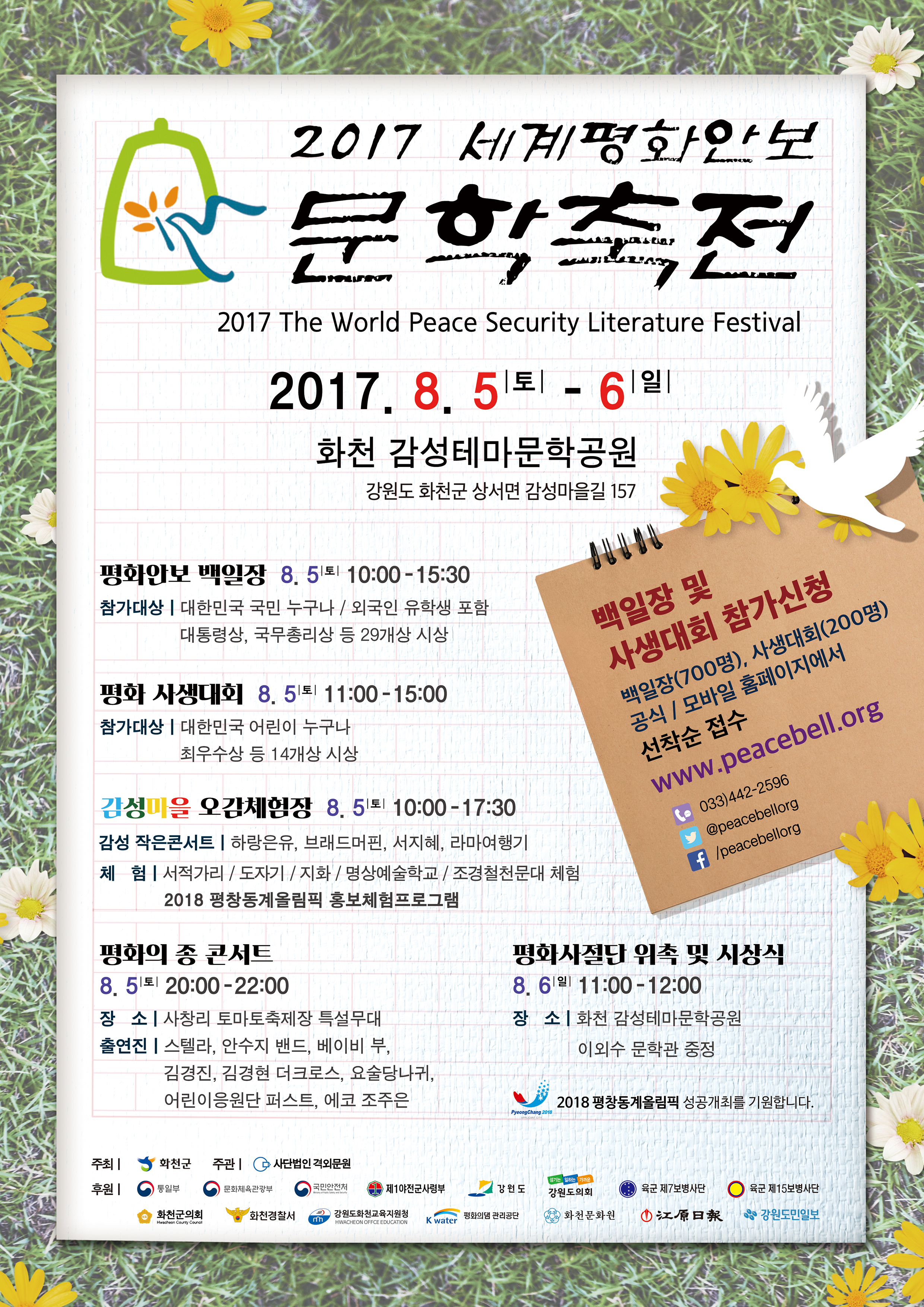 * 문학축전 홈페이지를 통한 온라인 선착순 접수 http://www.peacebell.org/2017