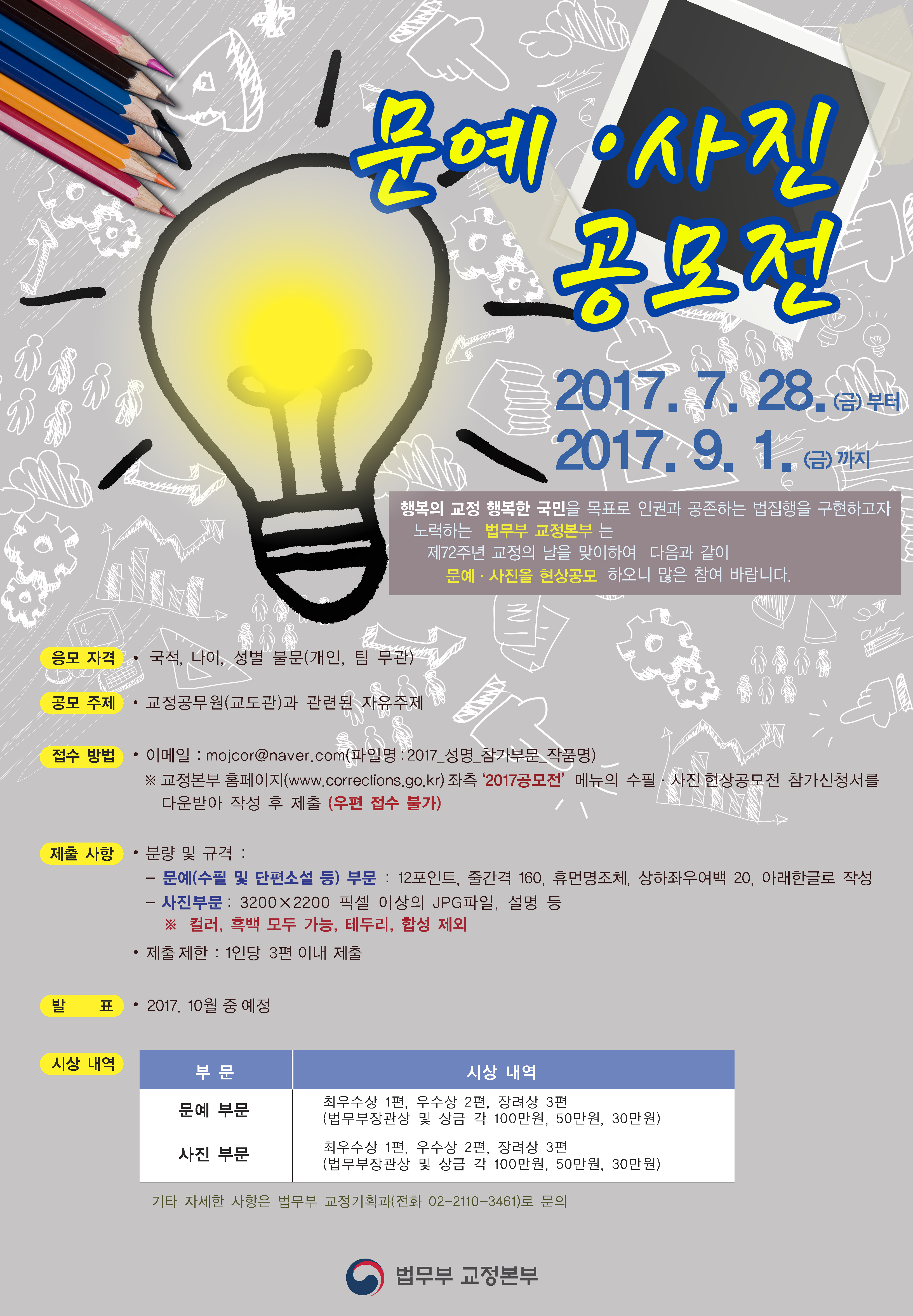 - 발표 : 2017. 10월 중 예정 (상세한 일정은 교정본부 홈페이지 및 페이스북에 게재)