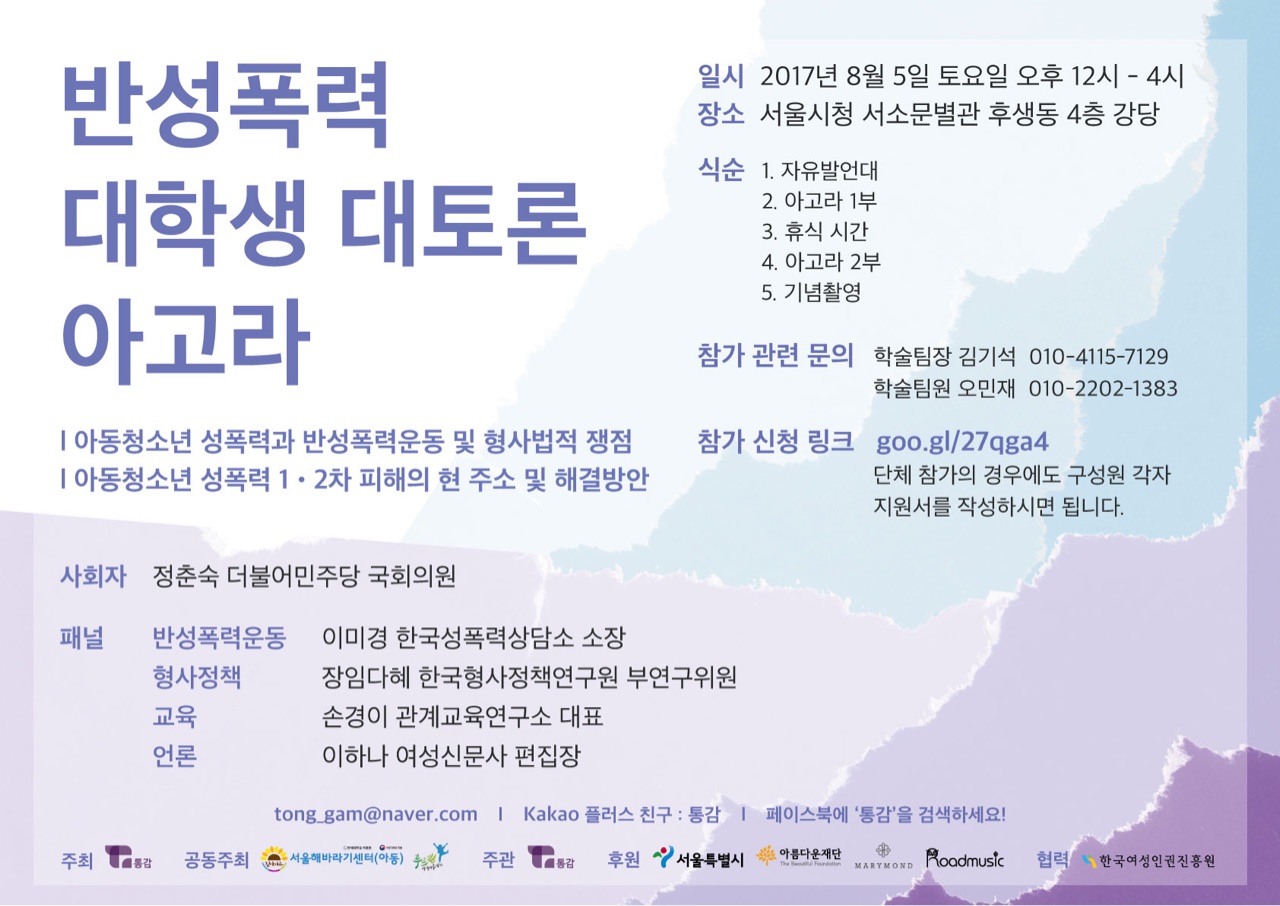 - 아고라 참가 관련 문의 : 학술팀원 오민재 (Tel.010-2202-1383 / E-mail.  tong_gam@naver.com )