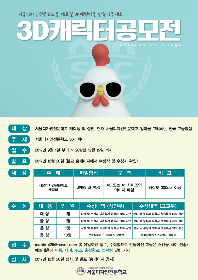 2017 서울디자인전문학교 3D 캐릭터자인 공모전
