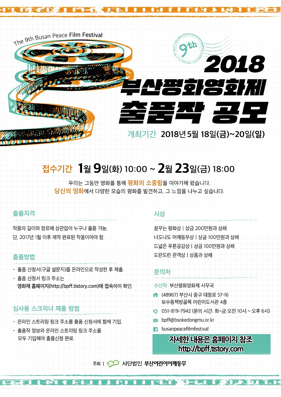 2018 제9회 부산평화영화제 출품작 공모 (1/9~2/23)