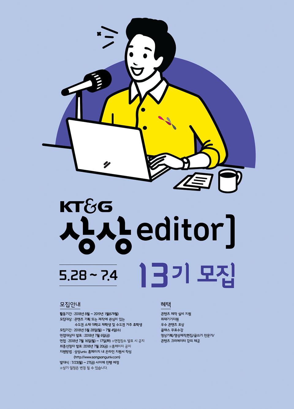 - 모집분야 : 글·사진·영상·카드뉴스·웹툰 등 다양한 형식의 콘텐츠 제작 분야