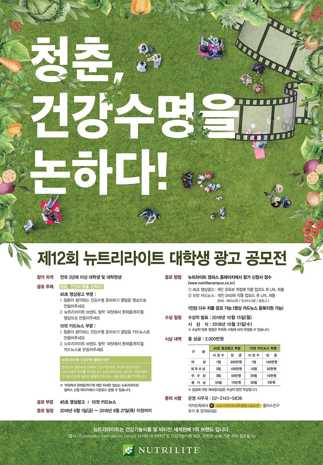 - 카카오톡에서 <뉴트리라이트대학생광고공모전> 플러스친구 추가 후 문의하세요.