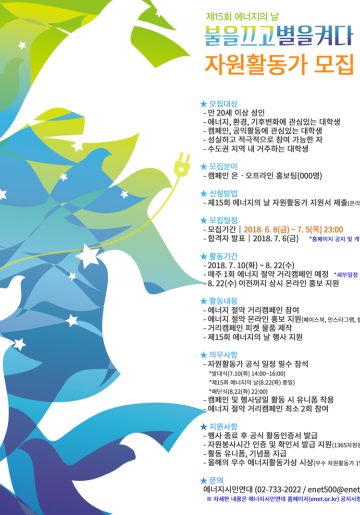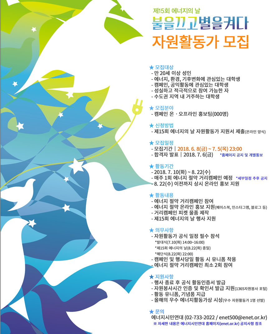 [에너지시민연대]제15회 에너지의 날 자원활동가 모집(~7/5)