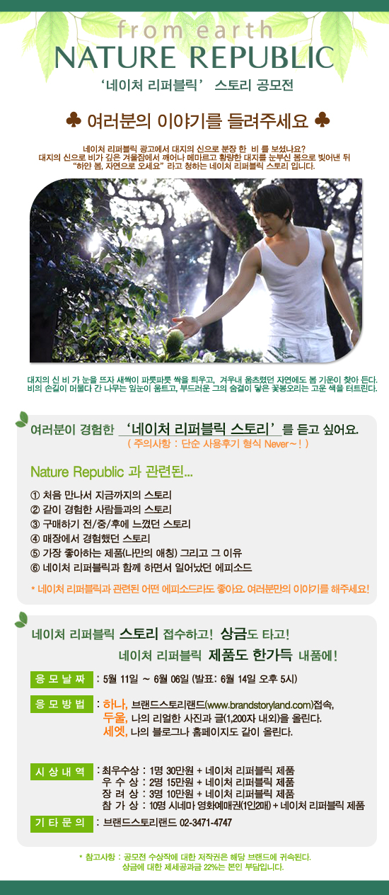 여러분이 경험한 ' 네이처 리퍼블릭 스토리' 를 듣고 싶어요.