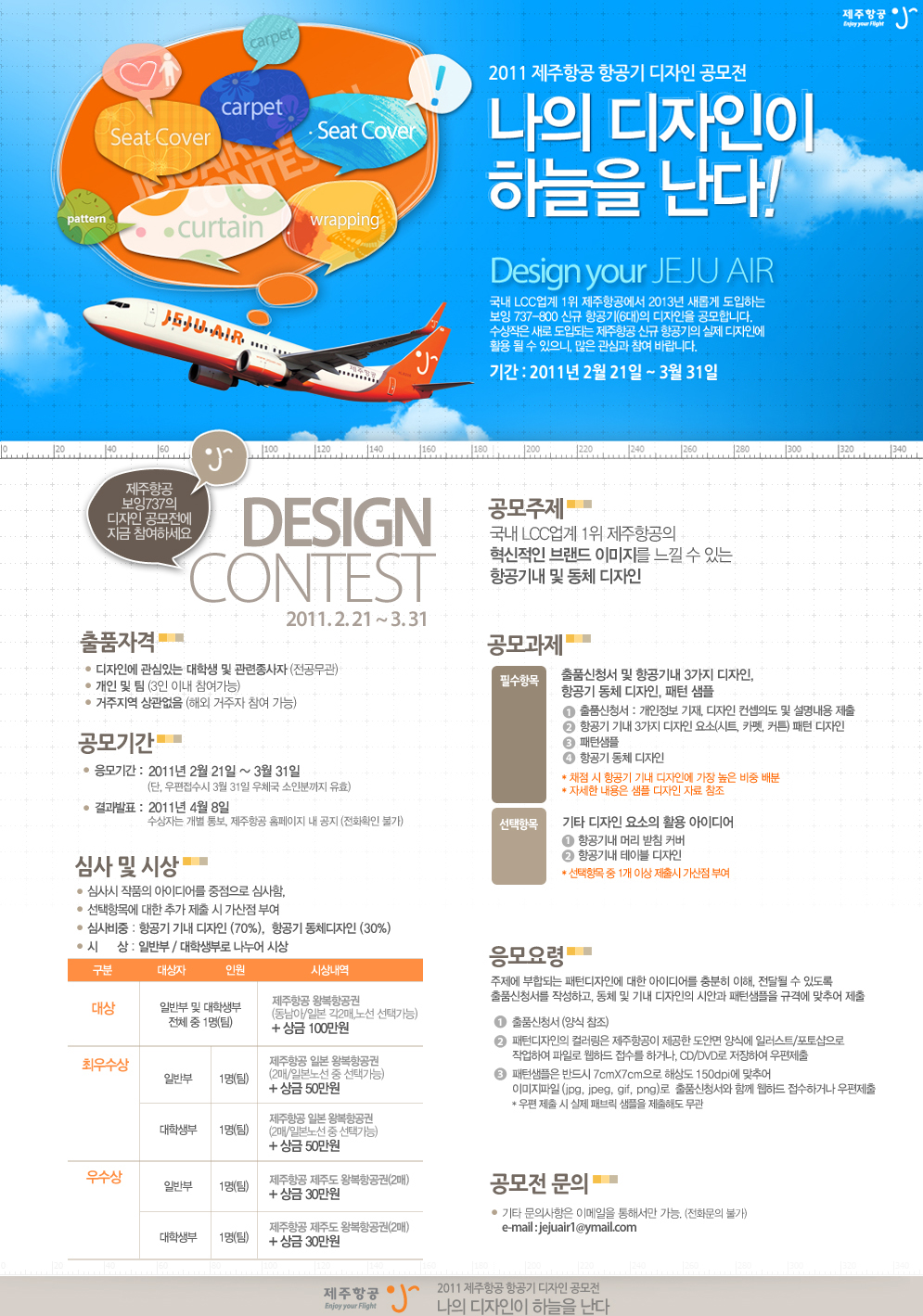 - 심사비중 : 항공기 기내 디자인(70%), 항공기 동체디자인(30%)