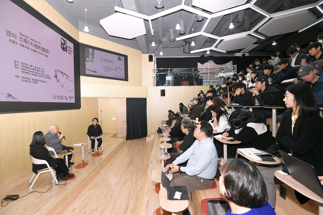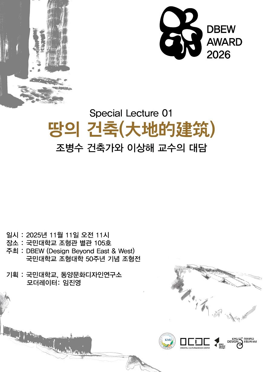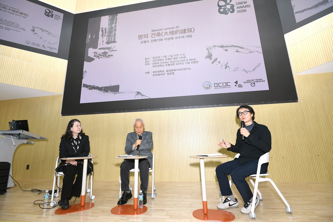 이번 어워드의 주제이기도 한 ‘동양과 서양을 넘어서는 미래 디자인 교육의 확장성’을 건축적 시선으로 논의해보는 자리로 마련된 이번 특강은 국민대학교 동양문화디자인연구소(OCDC)의 기획으로 이루어졌으며, 조병수 건축가(BCHO Architects)의 강연과 특강의 하이라이트인 조병수 건축가와 이상해 국민대학교 석좌교수의 대담이 진행됐다.