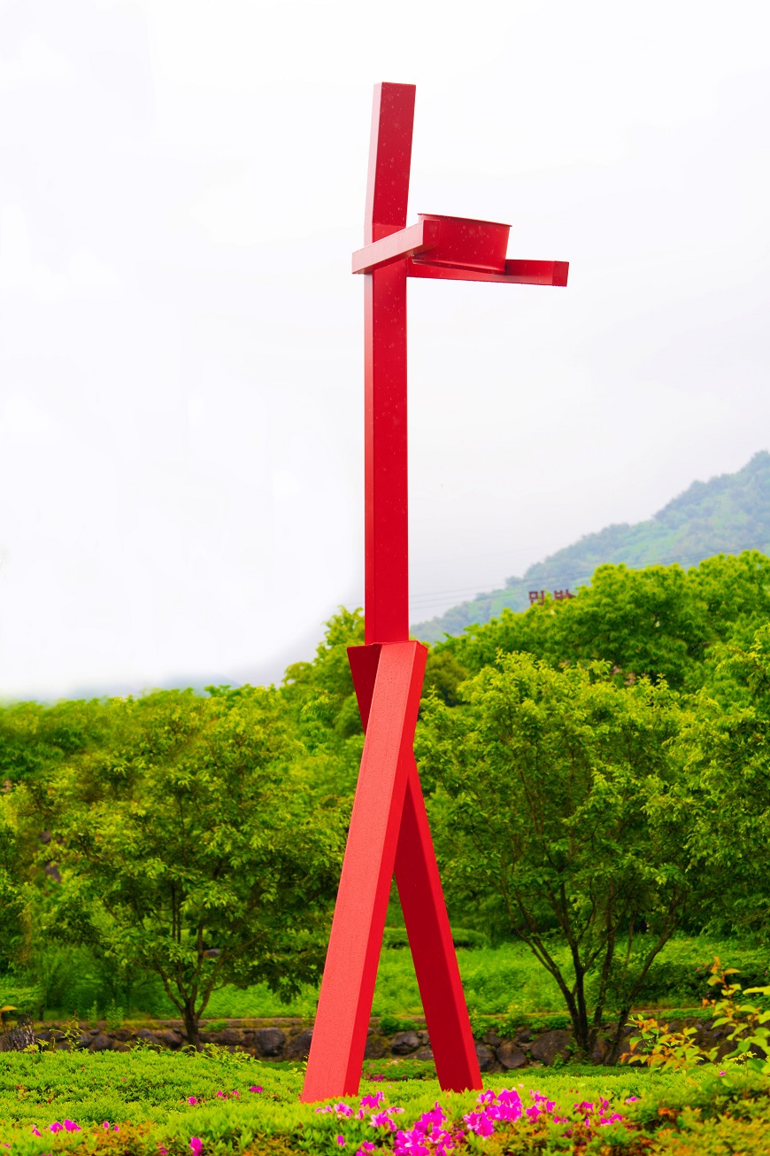 ‘2025 지리산 국제 환경 비엔날레’ 전시 작품, Tea Sapiens_scrap steel, h9.5x8.5x1.2m,  김성수 작, 하동야생차박물관, 지리산아트팜